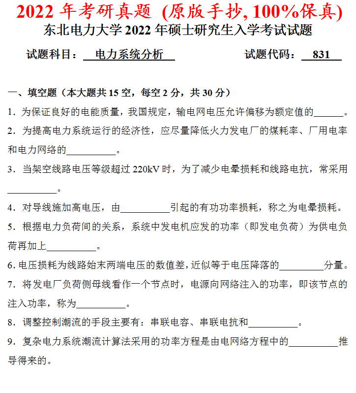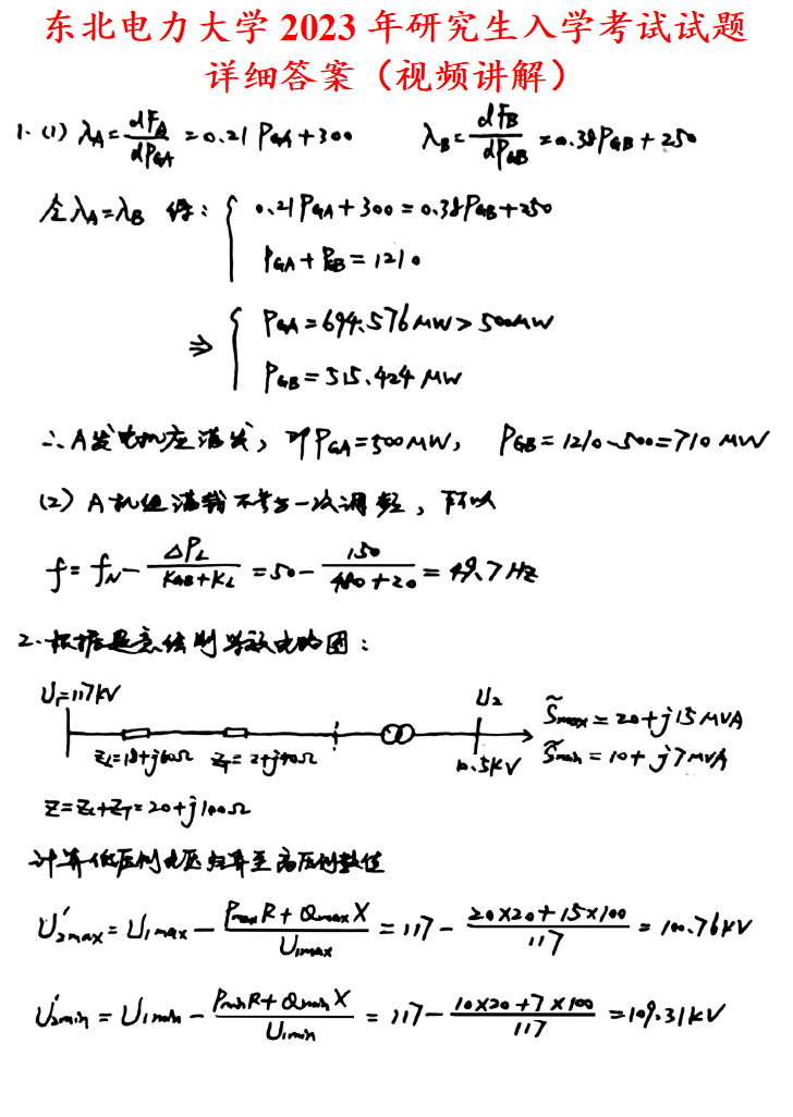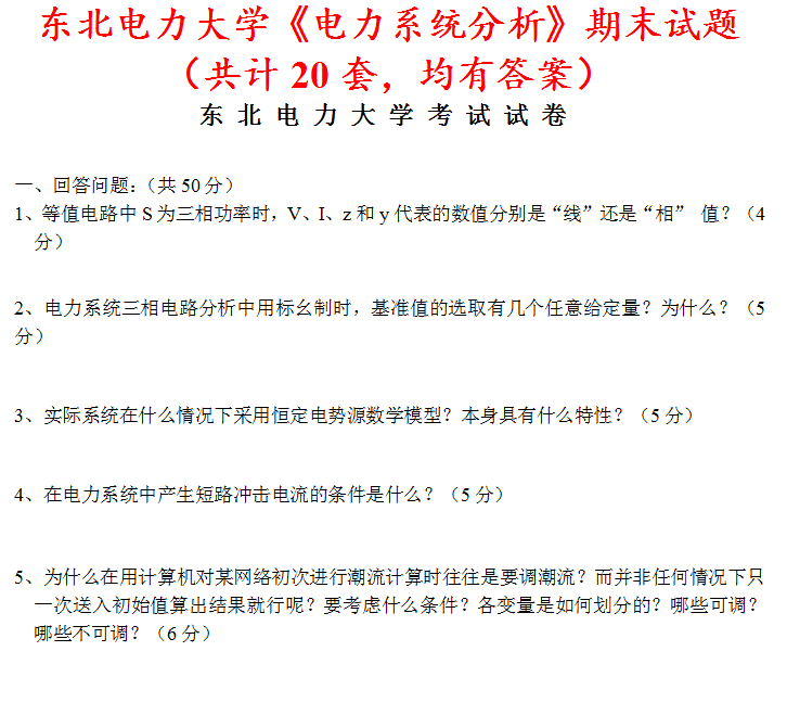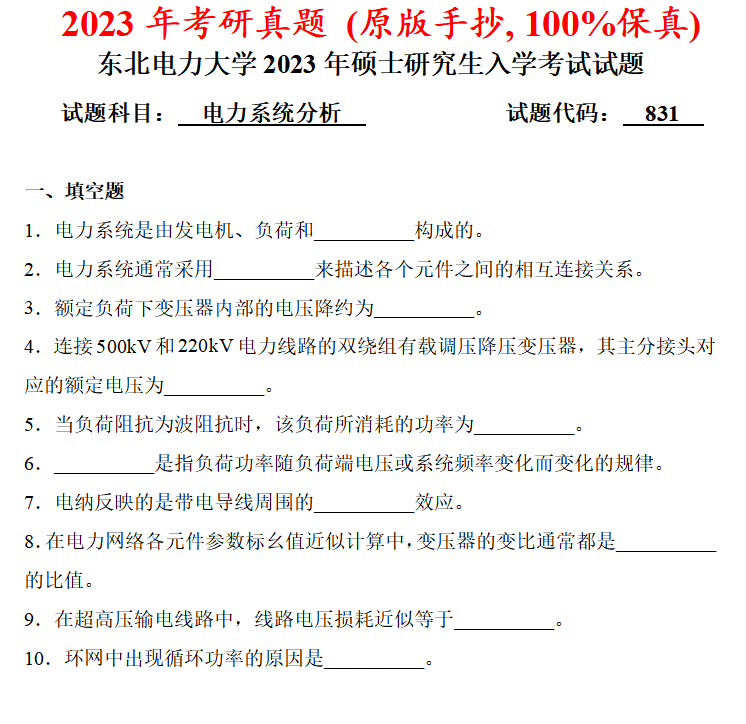 东北电力大学831电力系统分析考研真题答案网学天地东电电气工程考研