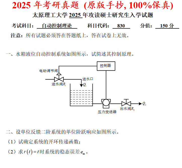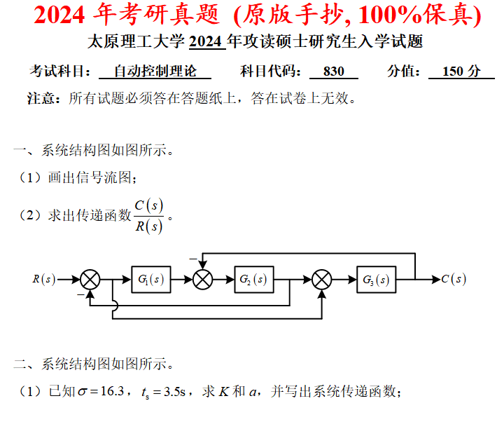 太原理工大学830自动控制理论考研真题答案控制原理控制工程自动化网学天地