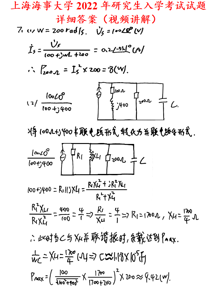 上海海事大学820电路原理考研真题答案网学天地电气控制工程上海海大
