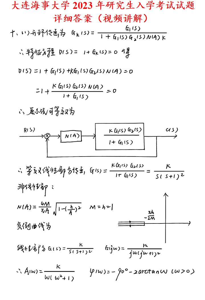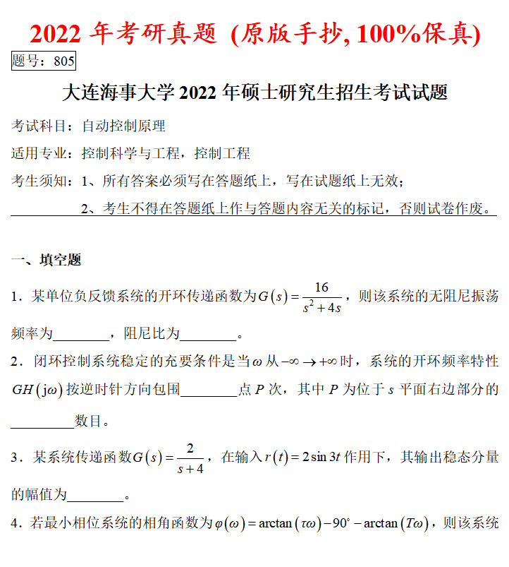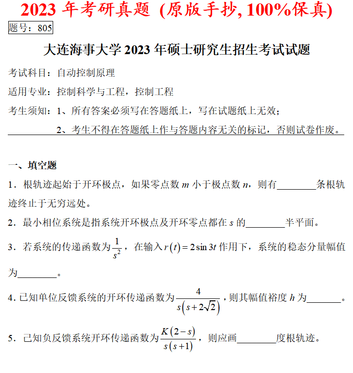 大连海事大学805自动控制原理考研真题答案网学天地大连海大控制工程自动化电气工程