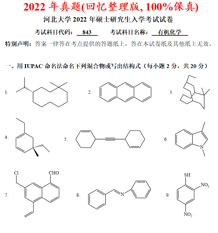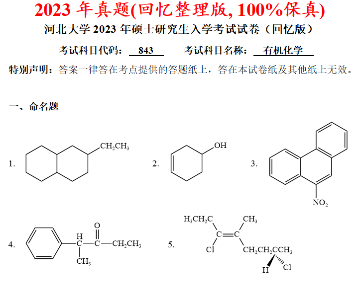 河北大学843有机化学考研真题答案河大化学材料考研网学天地