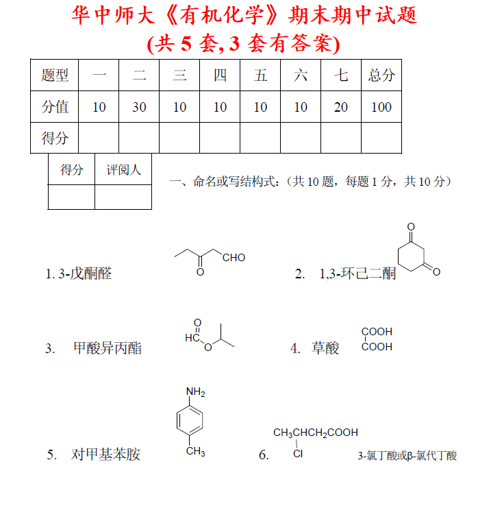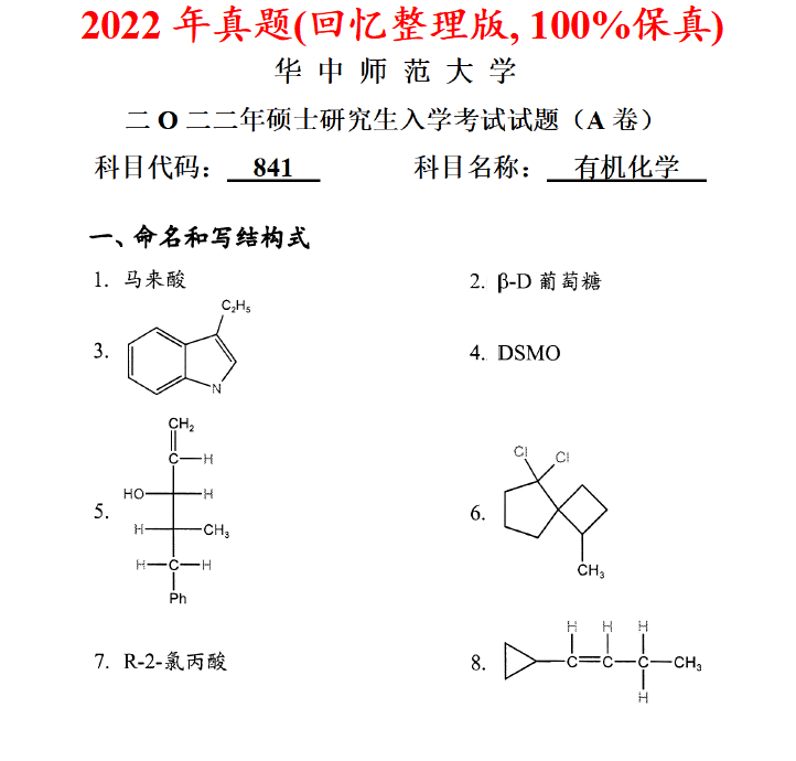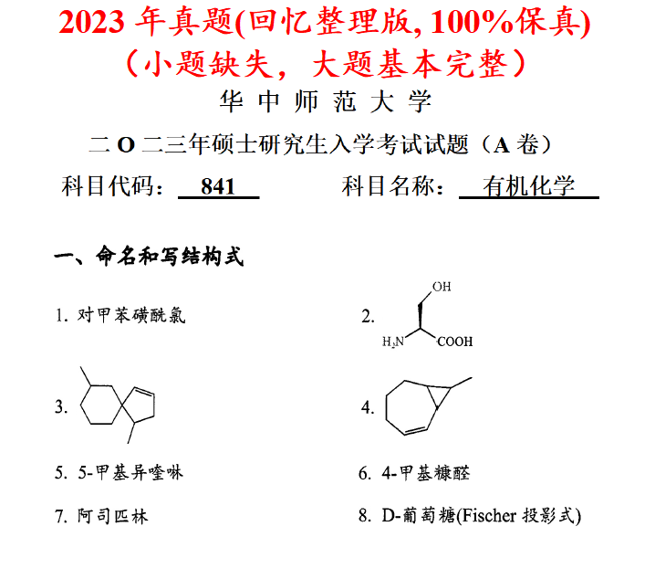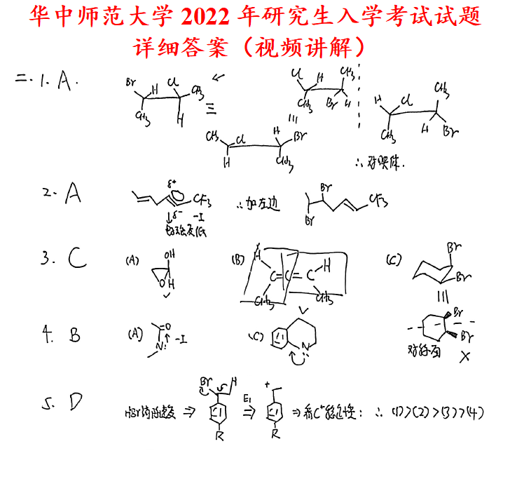 华中师范大学841有机化学考研真题答案华中师大化学考研网学天地