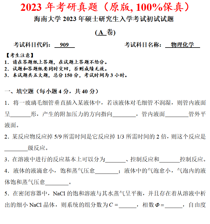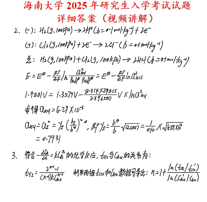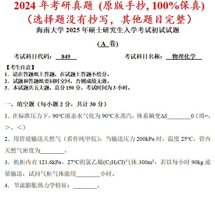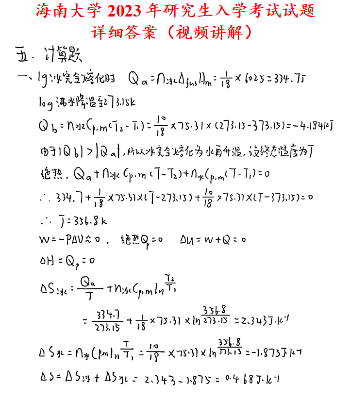 海南大学849物理化学考研真题答案海大化学工程化工考研网学天地