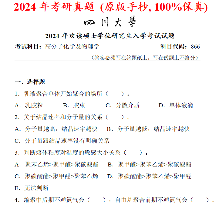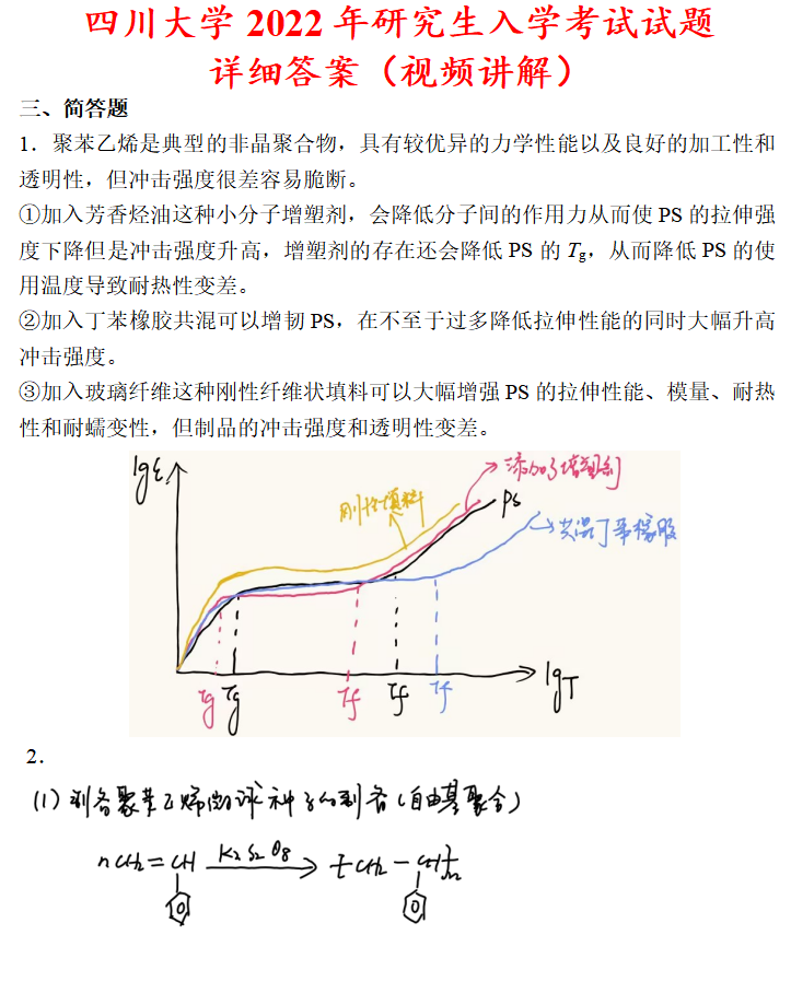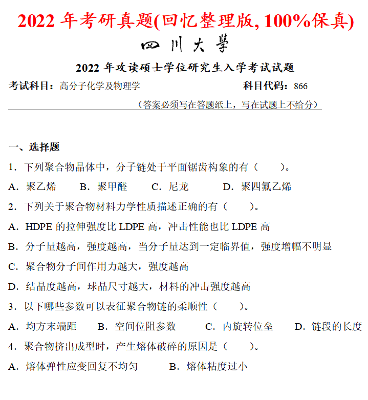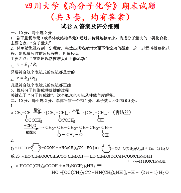 四川大学866高分子化学及物理学考研真题答案川大材料网学天地