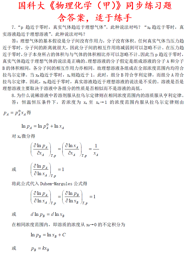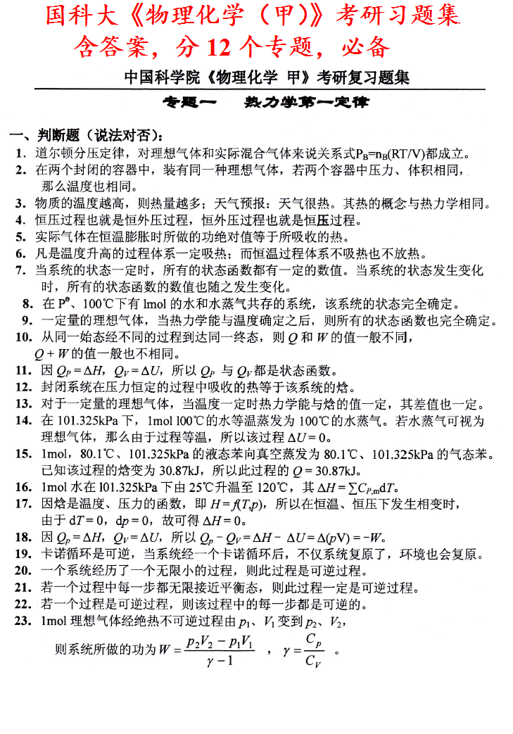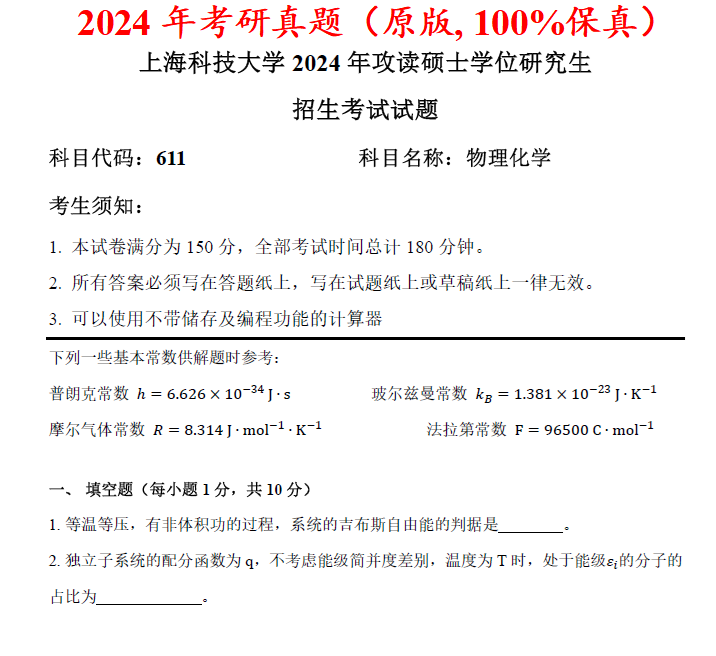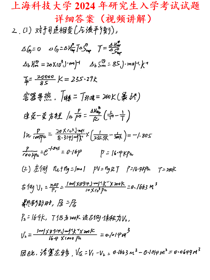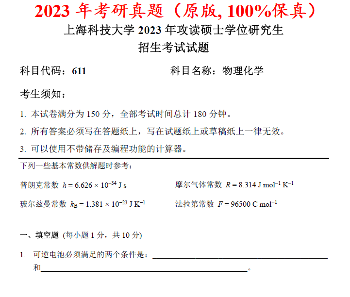 上海科技大学611物理化学考研真题答案上科大化学考研网学天地