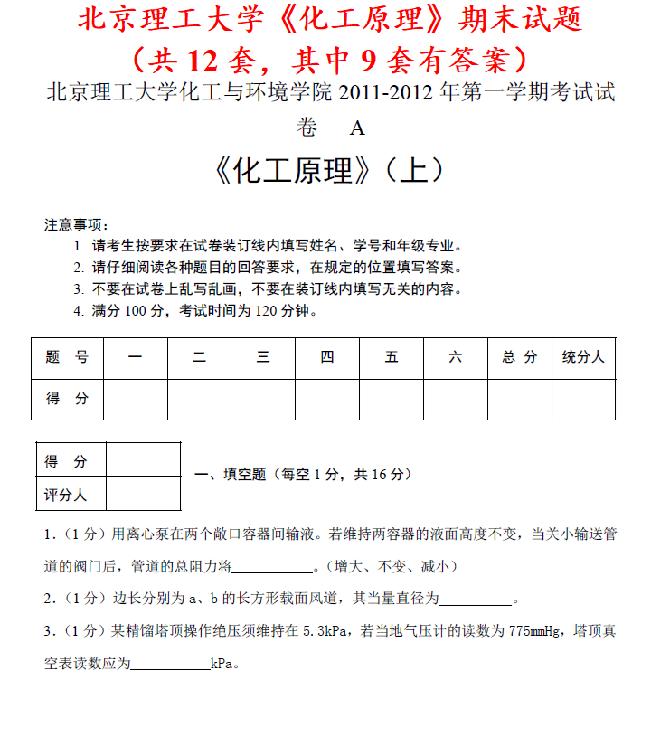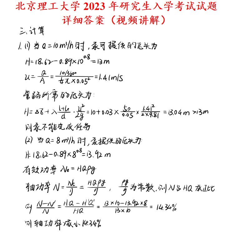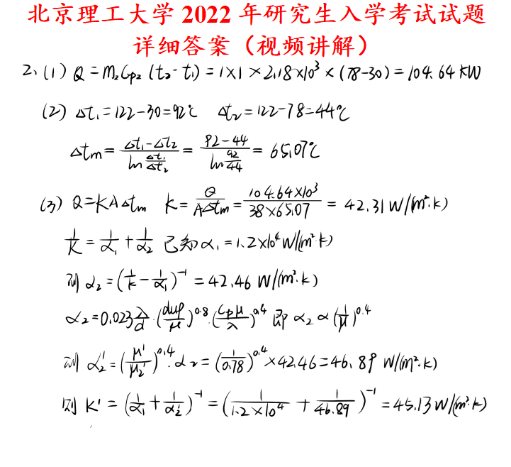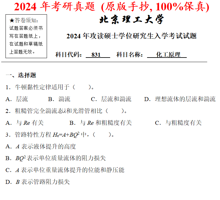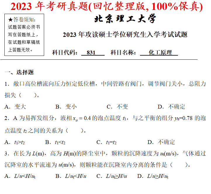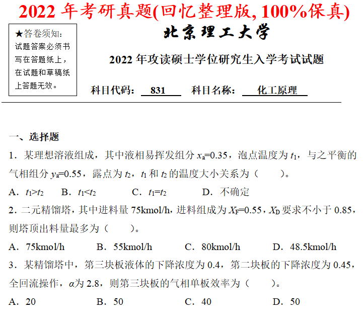 北京理工大学831化工原理考研真题答案北理工化学工程网学天地