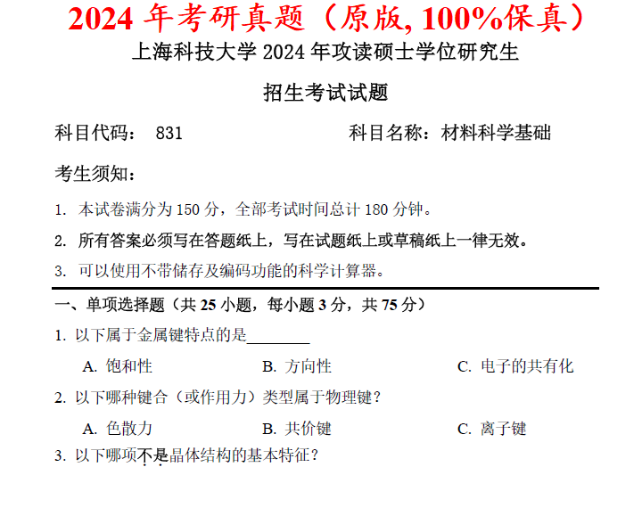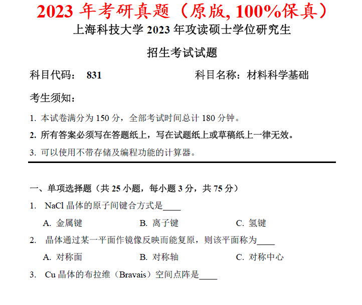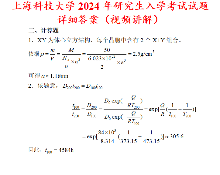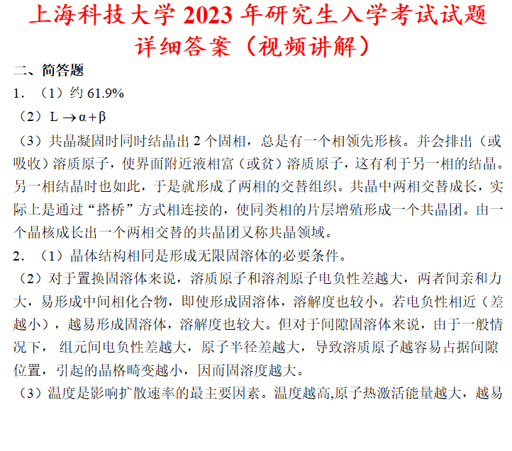 上海科技大学831材料科学基础考研真题答案网学天地上科大材料工程考研