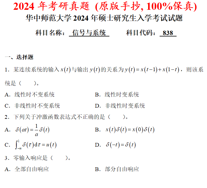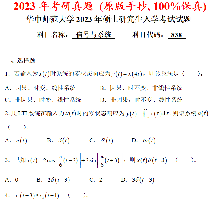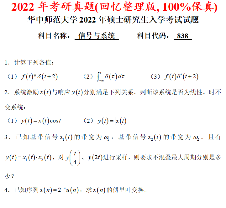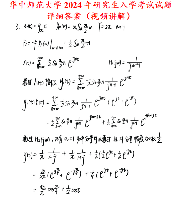 华中师范大学838信号与系统考研真题答案华师大通信考研网学天地