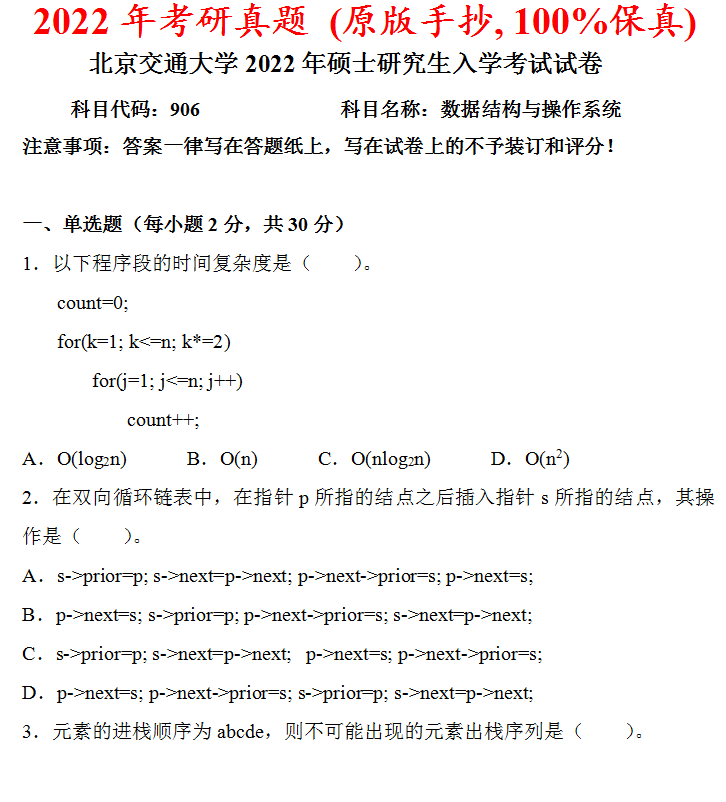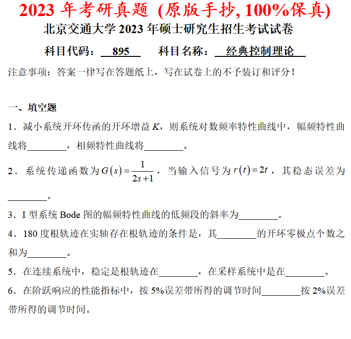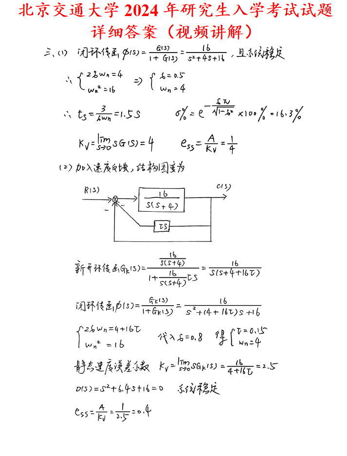 北京交通大学801自动控制综合考研真题答案北交大863自动控制原理数据结构
