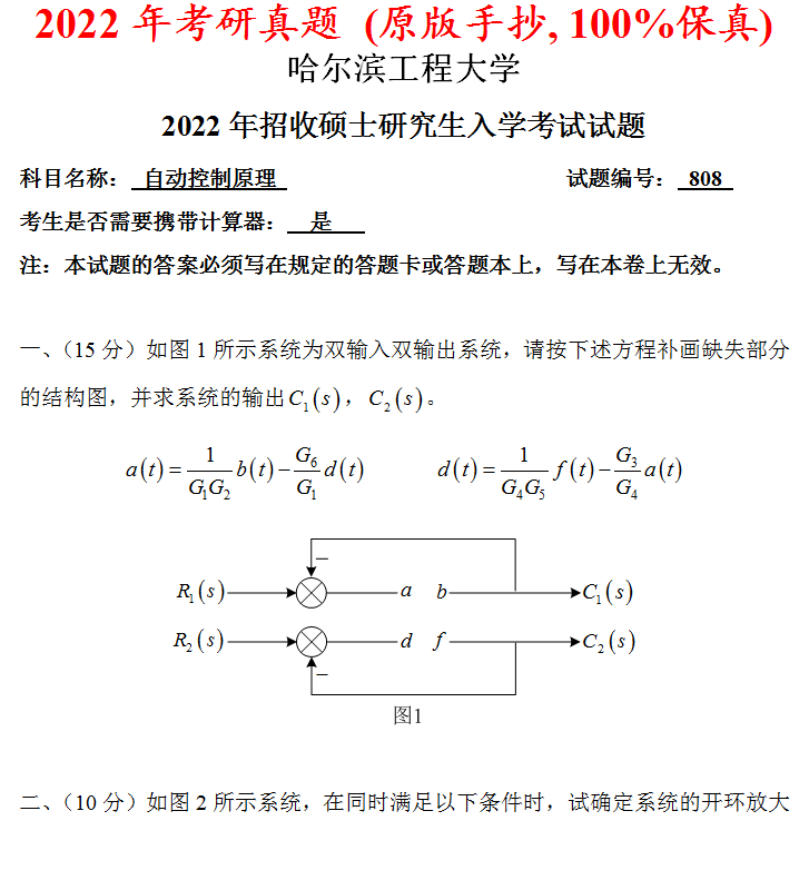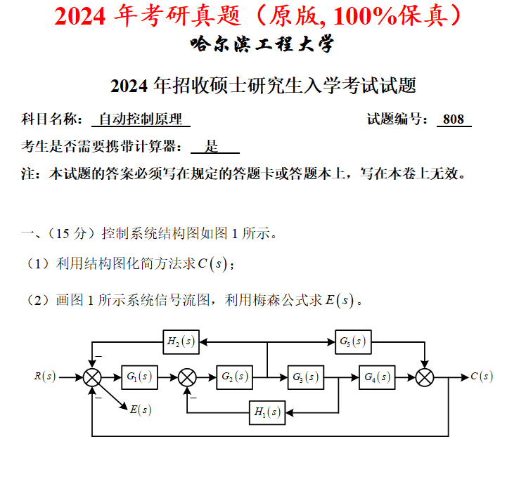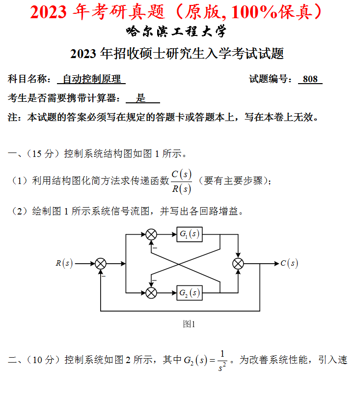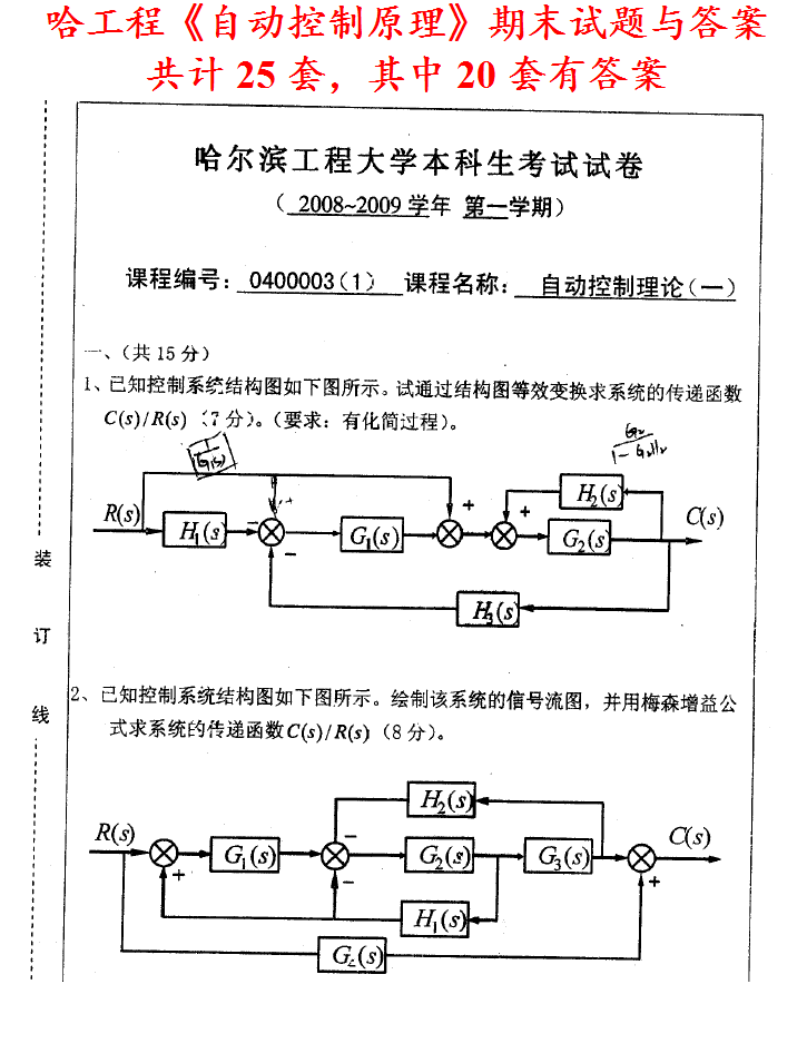 哈尔滨工程大学哈工程808自动控制原理考研真题答案资料网学天地自动化控制工程考研